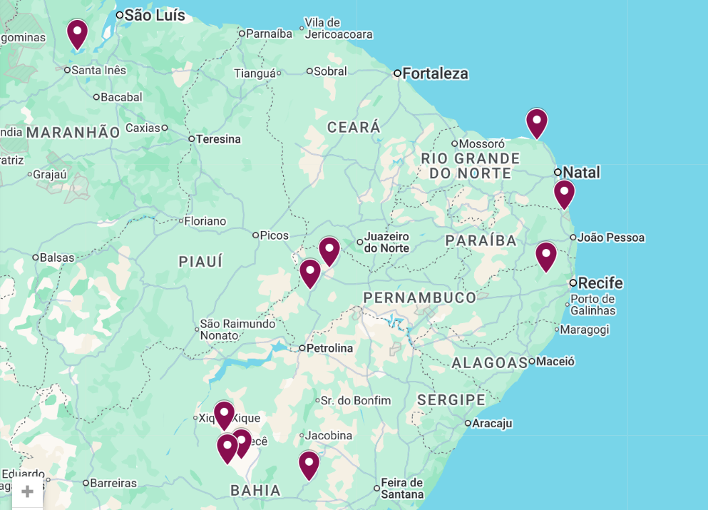 Bahia (Barra do Mendes, Canarana, Central, Macajuba), Maranhão (Penalva), Rio Grande do Norte (São Miguel do Gostoso), Paraíba (Mataraca), Pernambuco (Bodocó, Limoeiro e Santa Cruz).